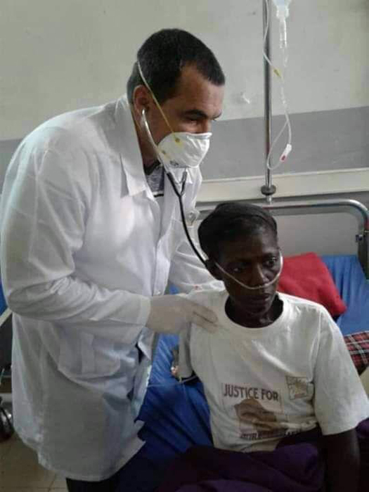 En el actual escenario de pandemia, generado por el coronavirus SARS-CoV-2, y como otros colaboradores cubanos de la salud en el orbe, Sastre Acevedo atiende, en la zona roja, a los pacientes infectados con el virus en esa nación africana, cumpliendo las medidas de bioseguridad para evitar el contagio con la enfermedad causante de miles de muertes en 2020.
