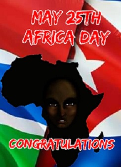 Banjul, May 24th. – The Embassy of Cuba in the Gambia and the health professionals of the Medical Brigade (CMB) of the Caribbean island who work here congratulate this sister nation, on the occasion of May 25th, Africa Day.