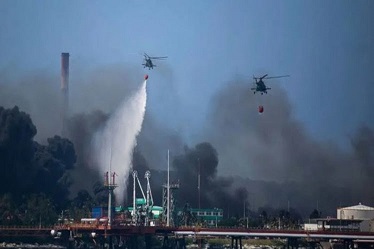 From the disaster zone, where three tanks have collapsed due to the flames, the column of smoke raises today grayer and less black than the day before. Dromedary-type aircraft also participated in the air operations.